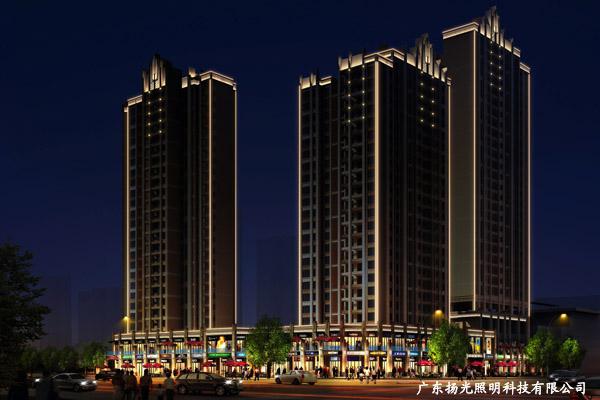 華生中心建筑主要是由西北側(cè)信安大道商務(wù)綜合樓,東南側(cè)住宅樓組成的樓宇,其照明特點也注重建筑的功能關(guān)系,層次關(guān)第,把握好照明亮度級別及控制。根據(jù)建筑功能與結(jié)構(gòu)的不同,主要分為四個亮度級別。