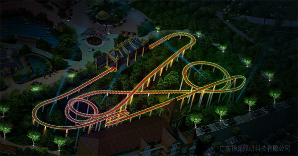 六盤山路上望向哇呀哈完美樂園第一眼就能看到過山車的龐大輪廓,黃藍(lán)色相間的粉墨裝飾看起來格外奪目耀眼。