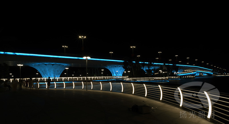 橋梁是一種實(shí)質(zhì)連接,照明則是自然與燈光的對(duì)接。將燈光融入海波的輕盈與流動(dòng)、花朵的絢麗爛漫,燈光表現(xiàn)?;◢u婀娜多姿、俊秀亮麗的氣質(zhì)。