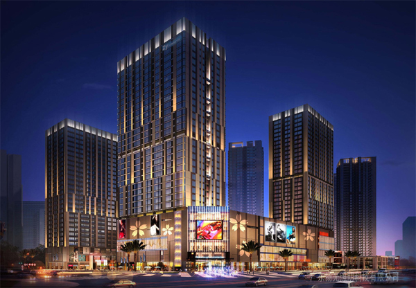 建筑裙樓外圍的燈光從觀看和感受入手,以體量為單位,強調(diào)大面積光感給人和車流的視覺沖擊,從視覺的角度吸引消費群體。