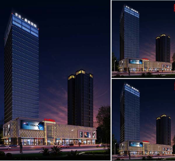 整體燈光以簡潔大氣為主,裙樓商業(yè)以表現(xiàn)熱鬧而雅致的氛圍為主,用小壁燈和內(nèi)透搭配表達(dá),主樓立面用LED點光展現(xiàn),點光安裝于室內(nèi),見光不見燈:建筑頂部微微透出的燈光搭配著LED發(fā)光字,與航空障礙燈共同闡述遠(yuǎn)視的效果,整體燈光輕靈飄逸,簡潔優(yōu)雅。